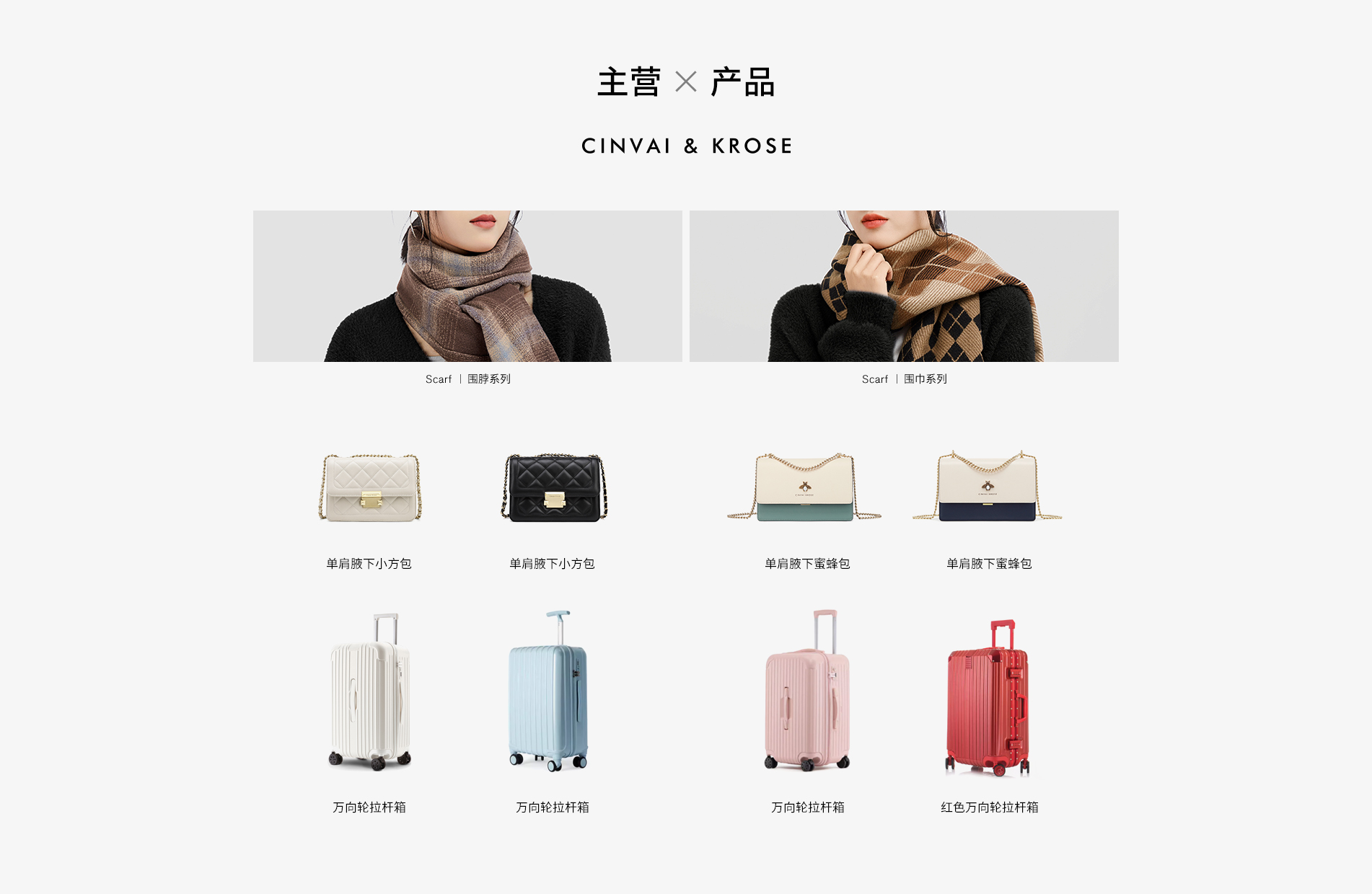 目前,集团旗下品牌有:CinvaiKrose(辛瓦伊▪克洛斯)、Cnoles(蔻一)、马莎兰缇(MashaLanti)、宫选(GONSION)等。